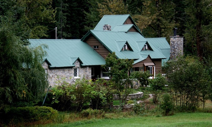 This magnificent and spacious home has 6 bedrooms and 3 1/2 baths. The unique setting of this home is at the confluence of two streams and surrounded by pristine natural beauty to stir your heart. Like a painting come to life with romantic rock bridges, quaint stone steps and walls, lush pastures, fruit trees, flowers and jade-green ponds; this is a dream come true! This enchanting home is located at the gateway into the vast National Forest. This 150 Acre ranch is surrounded on three sides by U.S. Forest land; 2 1/2 Million Acres extending to Montana and Canada! There are deer, elk, moose, bear, wolves, bald eagles, wild turkeys, and ermine on or visiting this ranch; and we have maintained the property as a wildlife preserve. There are no visible neighbors and this is a place of serenity, peace and complete quiet except for nature!