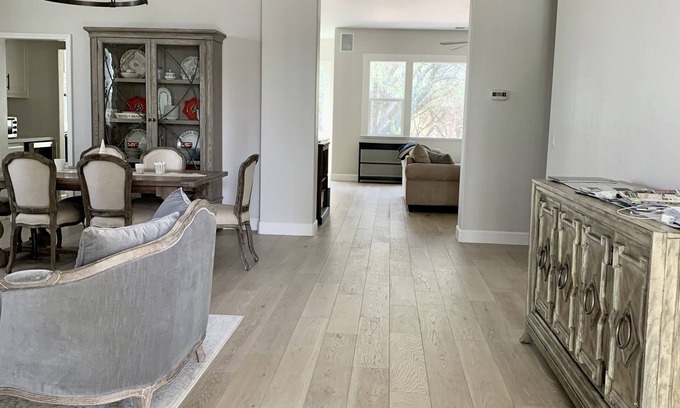 Single story, newly remodeled 4 bdrm, 3 bath home in a beautiful neighborhood in El Dorado Hills. Views of Folsom Lake from the side patio and gorgeous oak trees dot the private backyard. Three bedrooms and an office bedroom with convertible sofa bed to sleep 8.
