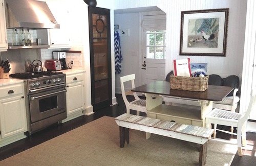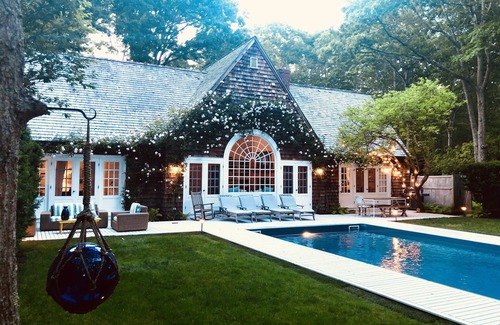 Adorable 2 story family home in the heart of Sagaponack. 3 Bedroom main house, all with en suite bathrooms, plus an additional bathroom off the kitchen with a separate guesthouse that includes a queen size pullout, a wet bar, office and full bathroom. **WINTER MONTHS POOL HOUSE NOT AVAILABLE** Upon entry is the expansive and light living room that looks straight out to the picturesque pool and back yard. The living room features a comfortable couch, leather club chairs plus additional seating as well as a huge wood burning fireplace. The main floor includes the living room, master suite, kitchen and extra bathroom/laundry. There are 2 additional bedrooms upstairs on either side of the living room with separate staircases and both en suite bathroom. The master suite is fit with a king size bed, closet space and French doors that lead out to the deck and pool. The guest suite above the master is set up to perfectly suit your little ones, complete with 2 twin beds (a Baby Bjorn pack’n’play or a full size crib if needed), a nautical themed bathroom and a wall of vintage children’s books. The 2nd private guest room is located above the kitchen accessed by its own private staircase and also includes a full en suite bathroom. There is an additional bedroom in the pool house (if needed) that is perfectly set up for guests with a queen size pull out couch, full bath and wet bar/kitchen. There is a Samsung Flat Screen television in the living room, an additional flat screen television in the kitchen and another flat screen television in the pool house, all with full premium channel cable- living room also has Apple TV. WiFi throughout, as well as a Sonos Music System that plays thru built-in speakers in every room in the home. The Kitchen is complete with luxury appliances and a perfect breakfast nook with French doors that lead to the outdoor dining table and BBQ nestled under an apple tree. The pool and backyard are completely enclosed with a high fence and is private and relaxing. The yard is perfectly manicured, yet you are surrounded by trees and a forest feel that create a unique and cozy quality. The backyard also features teak lounge chairs, a dining table, an outdoor lounge set as well as an enclosed outdoor shower. There is also an expansive front lawn and gorgeous curving pebble driveway. The home is about 2500 sq ft and sits on an acre of beautiful land. The Long Island Railroad runs along the back of the property and the home is just across from the famous Poxabogue pond and has gorgeous walking trails around the Poxabogue County Park – a preserve full of wildlife and stunning views. Walk to Loaves & Fishes for coffee and the best scones in the Hamptons as well as a variety of the tastiest prepared foods you’ll find around. A bit further is a farm stand that sells a huge variety of local produce. Also walking distance is the stunning Wolfer Winery. About a 5 min drive the beach, as well as to adorable Bridgehampton or to Sag Harbor, both offer top restaurants and shopping. This home is truly close to everything, but so comfortable and inviting - you may not want to go anywhere!