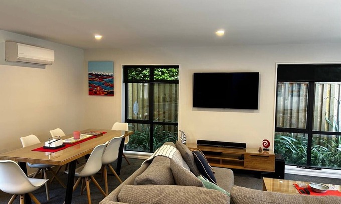 This stylish 3 bedroom home is perfect for the whole family, or great for friends! 3 double bedrooms, Master with king, walk in robe & ensuite. All bedrooms have the luxury of a tv. Open plan kitchen, dining & living with sunny patio. 1 onsite carpark just outside front door. 2.5 bathrooms, with main having a bath. Heating & cooling throughout the home. A home away from home with the facilities to do home cooking. Outside entertaining with BBQ. Washing machine & dryer in laundry.
