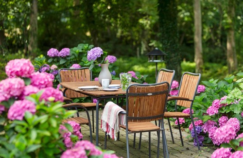 Step out into the lovingly landscaped garden, which is surrounded by flowering shrubs and shady trees. Lie down on one of the sun loungers or enjoy a coffee break at the round garden table. The green oasis around the house invites you to pause, relax and enjoy.