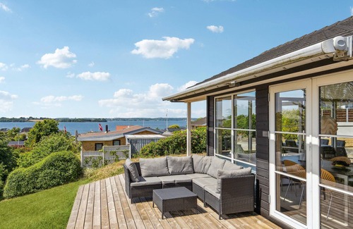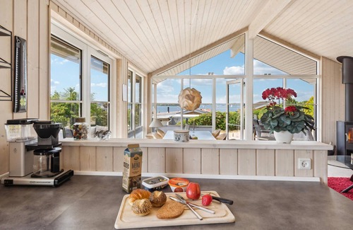 Welcome to this beautiful vacation home in a quiet area of Brunsnæs Strand. The location is secluded at the end of a cul-de-sac and promises you a relaxing vacation. Enter the welcoming house and feel right at home inside. It is tastefully furnished and offers you a magnificent view of the water through the panoramic windows in the living room, where you can watch the busy boat and ship traffic to and from Flensburg.