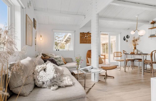 Your vacation home on the island of Orø, located in the middle of the picturesque Isefjord, makes every morning a special experience. Be inspired by the tranquil view of the beautiful garden as you enjoy breakfast in the glassed-in conservatory. Start the day calmly and make your first plans for your vacation activities. The appealing, bright ambience of your vacation home radiates a pleasant carefree atmosphere. Light the wood-burning stove in the living room and get together with the whole family to play entertaining board games. The comfortable sofa corner provides for cozy hours, for example while reading an exciting thriller.