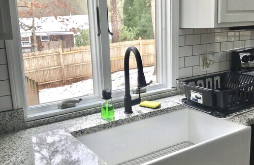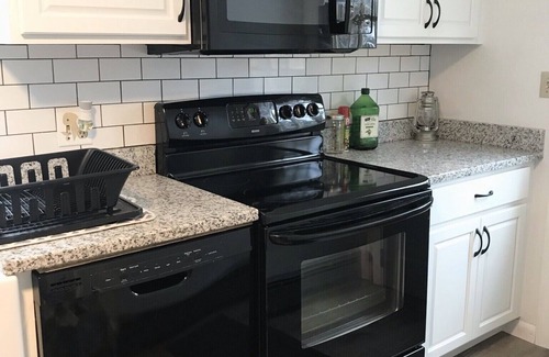 Main floor has a bedroom with a queen bed and full bath. Second floor contains 2 large bedrooms with 2 full beds each and a full bath. Kitchen is fully equipped with dishes, pots and pans, silverware, Nespresso coffee maker, blender, and toaster oven. Dining table fits 8 people. Living room has 55" smart tv with cable and apps. All 3 bedrooms and living room have window AC units. Basement includes 55" Smart TV, foosball table, ping pong table, 2-in-1 pool and air hockey table, board games, and dvds for your enjoyment. Basement has easy access to outside. There is a large back yard to play with the family that includes an outdoor shower and seating area with grill. Shed stores fire pit, beach chairs, and outdoor games.