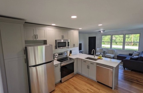 This charming, completely updated lakehouse is located on a quiet serene property. It comes with access to our 150ft association sandy beach with private boat launch on Sebago lake which is just a short 2 min walk down the street. This quintessential property is the perfect place to relax an escape the hustle and bustle of life. The kitchen has full size appliances, including a dish washer and washer an dryer. Also it is fully stocked with utensils, dishes, glassware, pots and pans. The bathroom has a beautiful shower and is stocked with towels, hand towels and face cloths. The home has 2 bedrooms and sleeps 6. The first bedroom is a queen bed an the second has a full over full bunkbed. We will also provide a pack n play with toddler size mattress for those traveling with little ones. Beach towels, chairs, beach toys, a wagon, fire pit and grill are all on site for your use! Spend a day on the beach or explore all the area has to offer with endless amounts of resturants, hiking trails, shopping and 30 mins to Portland/ocean. There are also boat and kayak rentals right around the corner! Then at the end of your day come home to a covered screened in porch equipped with table an chairs, making it a perfect place for a bug free evening of BBQ, board games and cold drinks. Also have the option to unwind by the fire and feast on some samores! If R&R is what your looking for but with also plenty to do if thats what you choose then this is your place!