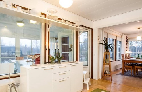 Updated home on Lake Sävsjön, 1 hour north of Örebro. 2 patios, a nice dock to enjoy your morning cup of coffee, spacious kitchen, sunroom, sauna, and privacy. A slice of quiet paradise to reset your soul.