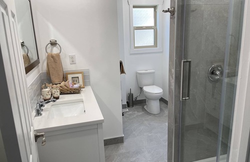 This ground level property offers easy access to its 2 bedroom and 1 bath .The first bedroom is equipped with a shaker style queen size bed and comfortable linens while the second bedroom has full-size/ twin size combo bunk bed great for groups and families . The newly renovated bathroom is crisp and modern.