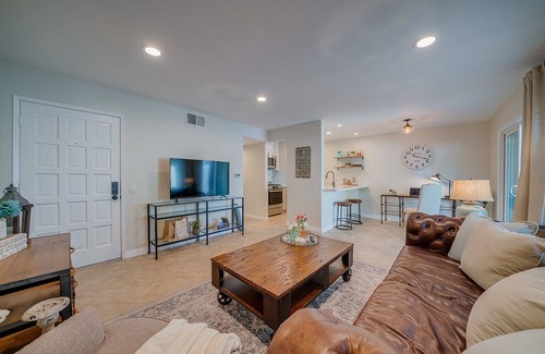 The immaculate kitchen is equipped with top of the line appliances along with a wine fridge and is stocked with everything you’ll need to cook a feast. The living room has comfortable seating to curl up with a good book and a large flat screen TV. Enjoy high speed WiFi(up to 250 mbps) at your own workspace. The bedroom features a luxury pillow top mattress with plush bedding and the closet has plenty of space to unpack your bags. Plus, your bathroom is stocked with the essentials, including shampoo, conditioner, and body wash. Enjoy your favorite cocktail by the fire in your well-furnished back yard.