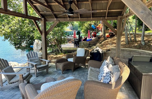 Lake Arrowhead is metropolitan Atlanta's best kept secret as far as Lake front living goes. Our 5 Bedroom 4 FULL bath home is located in the highly coveted "Narrows" of the Lake Arrowhead. Close to the open water of the Lake, our property is sure to offer all that you might need for a city escape. Lake Arrowhead is a 540 acre private lake that is divided into a "no-wake" region and an open water area by the dam. While Jet Ski's are not allowed, you can always find people enjoying the water in Kayak's, Paddle Boards, Sailing or tubing, wake boarding and water skiing. While only property owners are permitted to have boats at the Lake, there are boats for rent at the main Marina. We do provide 2 kayaks and Fishing Poles for our guests use. Lake Arrowhead has many amenities which include: an 18 hole Golf Course, Restaurant, walking trails, park, tennis courts and two pools. There are many different places to explore as well: downtown Canton, Cartersville, Ellijay, and Blue Ridge and the foothills, Tellus Science Museum and Amicalola State Park. Blairsville is also conveniently located. Don't forget about Reinhardt College which during Fall months has many events for the Family to enjoy.