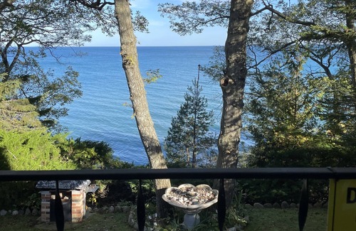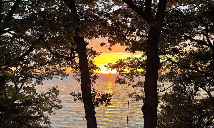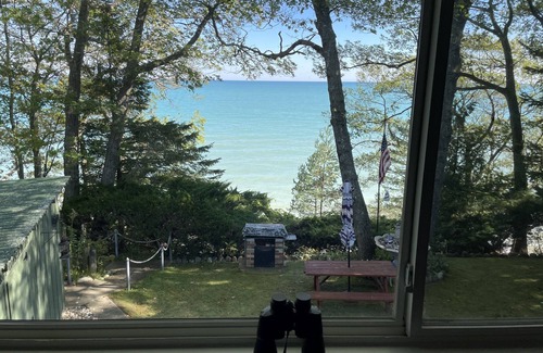Our home has an amazing view of Lake Huron, along with a fantastic private beach! Beautiful views from Lake Huron bluff with large cabin sauna, cold plunge, and outdoor shower. Right across the street is the Greenbush public golf course. There are about 50 steps (stairs) from the backyard down to the beach with fire pit. Greenbush is between Tawas and Alpena, 15 min drive from Oscoda.