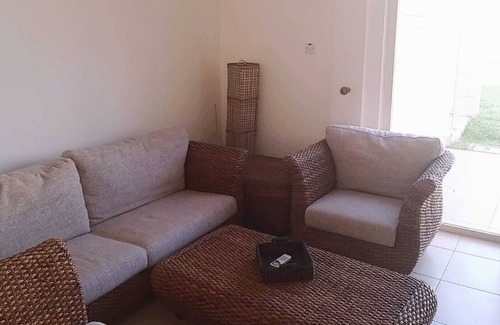 This is a bright and comfortable 2 bedroom, 2 bathroom first floor flat in the Turtle Bay complex near Esentepe, Girne, perfectly set up for a holiday right by the Mediterranean Sea. The complex has several communal pools, tennis courts, table tennis, outdoor chess, children's playground, a gym, with nearby bars and restaurants. There are some lovely walkways by the sea and there is also a golf course 500 metres away from the property.