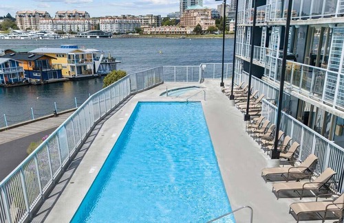 Steps from Fisherman's Wharf to get the best fish and chips and ice cream! Watch the drawbridge as it raises to let the Clipper Ferry come and go. Perfect location....walk to the Empress Hotel and Parliament Buildings or take the Harbour Water Taxi for a fun way to move around. Outdoor pool and hot tub to enjoy. Full kitchen and bathrooms to have all the comforts of home on your vacation.