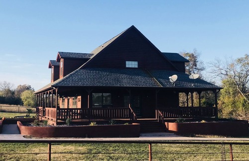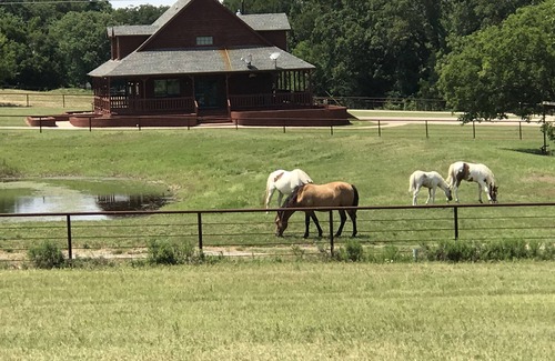 Peaceful, quiet country environment close to Dallas. 25 minutes from downtown. This 3-bedroom home is 2000 sq/ft with another 1100 sq/ft wrap around covered porch. Long private paved driveway. Interior is all wood floors, custom cabinetry, granite counter tops, modern fixtures, great views, leather sofa and loveseat. The home shares a 10-acre space with one other home approx. 300' up the hill. Large 50,000 gallon pool shared by both homes. Horses on-site. Pond. Outdoor bonfire pits. Outdoor grill. Master bedroom has queen bed and full bath. Guest bedroom 1 has queen bed and shared full bath. Guest bedroom 2 has dual twin beds and shared full bath. Home is equipped with WiFi, Direct TV, modern appliances, washer dryer. 1/2 guest bath downstairs for convenience. Two dogs on property, Annie is an old lab mix and Ruby is a young pointer mix. Both dogs are friendly.