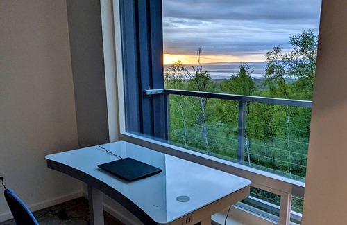 Take "Work from Anywhere" to another level with not one but two work tables and chairs in two of the bedrooms, highest speed internet and a printer on site. Enjoy working from home with views of Denali, the Alaska range and the mountains in Chugach state park.