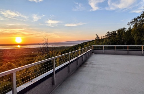 Large windows and glass doors to two large decks, one on each level and a large roof deck up top that gives you amazing views of Denali and the Alaska range on clear days and Sleeping Lady as well as the Knick arm inlet. Billion dollar water and mountain views from every window.