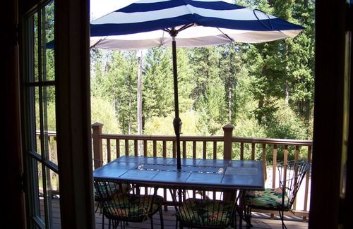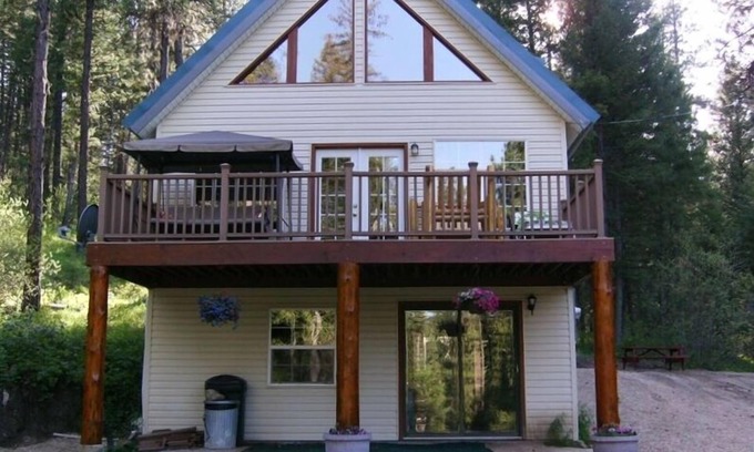 It's sure to make you relax and enjoy your stay. The Master bedroom w/ queen bed and private bathroom is located on the top floor. The main floor has Living Room, Kitchen, Full Bathroom and a Bedroom with Queen bed and closet and front deck has two Tables/w Umbrella and chairs. The walkout basement has a bedroom with two sets of bunk beds, a laundry room, and living room with couch and chairs and T.v. and Stereo. The Fully furnished kitchen has a flat top Stove and Oven, Refrigerator, Convection Microwave, Coffee Maker, Slow Cooker, pots, pans, utensils are all there for your use. Clear Creek Lodge is only 1 mile down the road from Cabin with a Bar and Restaurant for your convenience. From Nov-March 4 wheel drive likely needed for Icy road.