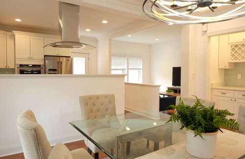 Modern house in the heart of Arlington, VA. Minutes away from Washington DC. 0.8 mile away from Clarendon metro station. Newly rebuilt home with five bedrooms, four bathrooms. Three bedrooms upstairs. Master suite with attached office/sitting room. High end master bathroom with jetted soaking tub, quartz counters, his and her sinks. Two more spacious bedrooms on the upper level with laundry closet Head down to the basement to an expansive bonus living area, two massive bedrooms, and walk up access to fully fenced backyard. The open floor plan on the main floor with center piece dining area, gourmet kitchen, living room and family room which provides cozy atmosphere for family and friends gathering. A five minute Uber to Reagan Airport and a quick electric scooter ride to fine dining, Whole Foods grocery store and some of the best night life Virginia has to offer!
