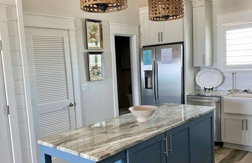 Perry's Place kitchen and baths are well stocked with paper goods, but should you need more the Dollar General is just 2.5 mi east. The full baths are equipped with hand soaps, a starter shampoo, conditioner, and body soap, and a blow dryer. The kitchen offers an ample supply of paper goods, foil, plastic wrap, dish detergents, and garbage bags for use during guests stay.