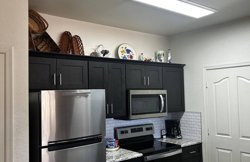 Enjoy the heated pool, hot tub, grill, gym, lake, and volleyball court. Please have fun and relax at our newly fully renovated one-bedroom condominium, with new floors, granite counters, bathroom, and painting. Additionally, brand new appliances: dishwasher, refrigerator, oven, stove, and microwave. Brand new king-size memory foam mattress. Pullout couch can accommodate two people. Beautiful cozy patio and included parking area.