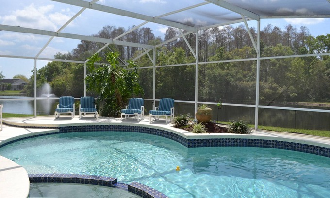 Our stunning villa has a private south facing heart shaped pool offering magnificent views over the lake and also boasts an in-built spa. The pool area has a fine mesh screening which prevents insects from spoiling your vacation but doesn't distract from the beautiful lake view. What could be nicer than enjoying the sun with a cold drink looking out over the lake and watching the local wildlife. The private deck also has a large covered dining area with outside light and fan to allow for dining al fresco. Luxury Palm Casuals outside furniture is provided along with a good selection of pool towels.
