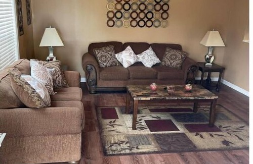 This is a beautiful 3 bedroom home with 2 queen beds and 1 King bed. It is also equipped with 2 full bathrooms. There is a Smart TV in every room in the house, which will allow you to watch some channels (If you have an account, you can access Netflix, Hulu, Amazon Prime). High Speed Wifi throughout the house. Full Kitchen for cooking and washer/dryer inside the home. Everything you will need to make you feel at home. This house is throughly cleaned after every tenant.