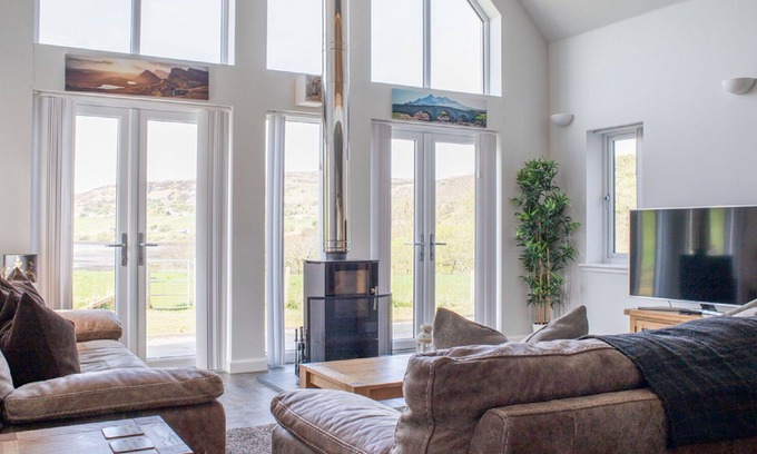 Beautiful private villa for 10 guests with hot tub, WIFI, TV, patio, pets allowed and parking is located in Uig. Beautiful private villa for 10 guests with hot tub, WIFI, TV, patio, pets allowed and parking provides accommodation, featuring Fireplace/Heating, TV, View, among other amenities. This House features Fireplace/Heating, TV, View, to make your stay a comfortable one.