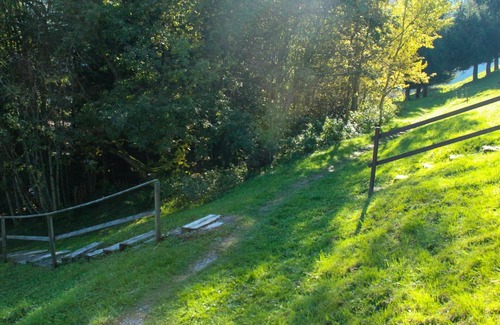 The chalet is accessible via a small 300-meter footpath, providing a secluded and serene setting. It accommodates a maximum capacity of six guests, with three bedrooms and one bathroom/WC (water closet). The layout spans two levels, making it a spacious and comfortable vacation rental.
