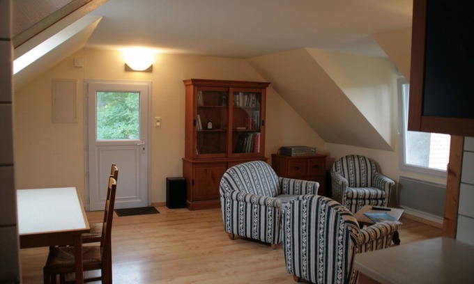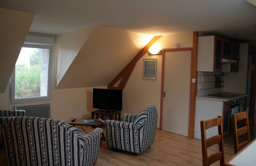 In la Baule, beautiful attic apartment lit by large windows, in a quiet area, on the first floor of an old renovated farmhouse 15 minutes walk from shops and the train station of Pornichet and 1.5 km from the beach.