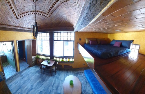 Great room with a unique style and a great vibe! Clean and equipped. It has two security doors to enter the room. It has one private garage and bridge from where you can see the city. Bed lining, towels and basic bathroom stuff included. Connect with Guanajuato from the moment you arrive.