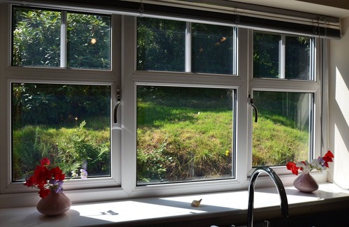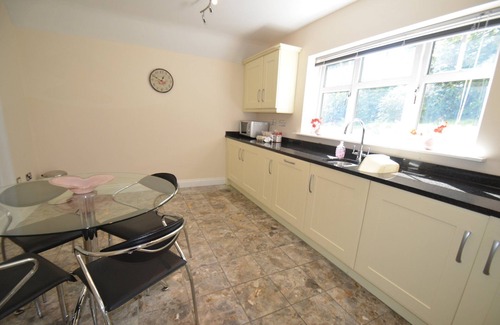 Straight ahead of you is the comfortable Living Room, with French doors leading out onto a small patio. You have everything you need entertainment wise with a 32" LCD TV with Sky Freeview, a DVD player and a games console should you wish to use them. Comfortable brown leather sofas, bookshelves, standard lamps and ornaments finish off this stylish living room perfectly. The large, modern Kitchen offers granite worktops, oven/hob, microwave, kettle, toaster, fridge and seperate freezer, a family sized dishwasher, a washer/dryer and all the pots, pans and utensils you could possibly need in a self catering holiday home. It also has a beautiful glass dining table that comfortably seats four people.