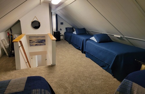 Beautiful sandy Lake Missaukee beach access right across the street at a dead-end cul-de-sac. Beach has fire pit, beach chairs, sand volleyball court, picnic tables and shuffle board for you to use. Cottage is equipped with one queen -sized bed on the main floor. The upstairs has a huge room with 2 queen size beds and three twin beds. Sleeps nine total (could be more with air mattress or couch). Upstairs also has a half bath. Fully equipped kitchen. Washer and dryer. Did we mention one of the best places to see gorgeous sunsets as the beach faces directly west? Come enjoy all Lake City and Lake Missaukee has to offer!