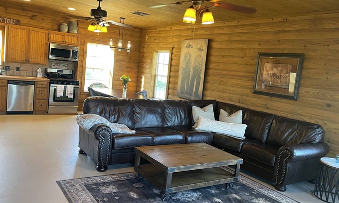 Far from the hussle and bustle of city life. We have lots of wildlife. There is a big front porch for relaxing. Fishing with walking distance. Two creeks that runs through the property.. There are three RV hook-ups. We have 2 beautiful private bedrooms and a farmhouse that has 6 beds. The cabin sleeps 11 comfortably. We are 30 minutes away from the best original Italian food in Krebs. Also 30 minutes away from Lake Eufaula. If you enjoy socializing we are 45 minutes from Reba's Place in Atoka and Blakes Sheldon's Ole Red is a 1 hr. drive.