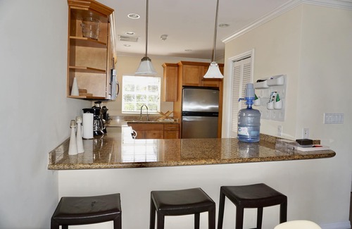Beautifully decorated, with a modern chic style this is a spacious townhouse with stunning sunset views and overlooking the turquoise, crystalline waters that have made the Bahamas a famous vacation spot. The townhouse is located in a very safe gated community and it is within waking distance to several restaurants. The community have two pools and there is a sandy beach less than 5 min away by walk. The house has a full kitchen well equipped with stainless steel appliances, utensils and granite countertops. There are two markets about two miles away accessible through the local bus service or by taxi. The BahaMar hotel complex with a casino and multiple variety restaurants is also about 1 1/2 miles away. The three bedrooms will confortably accommodate a family of 6. The first bedroom is a master with a queen bed an ample closet and a balcony. The second bedroom has two tween beds and a closet and the last bedroom has a queen bed with a closet and a window to the ocean. All bedrooms have a bathroom attached. For convenience the townhouse is also equipped with a washer and dryer. We have three beach chairs and towels that you can bring to the beach and the pools, just please remember to bring them back to the house with you.