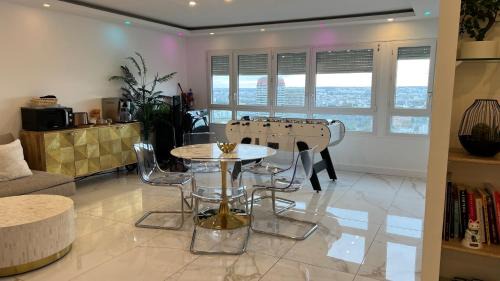 Food & DrinkTea/Coffee makerBathroomBathtub or shower, Body soap, Shampoo, Private bathroom, Toilet paper, Toilet, Shower, Hairdryer, TowelsMedia & TechnologyTV, Video games, Streaming service (like Netflix), Flat-screen TVGeneralCarbon monoxide detector, Heating, Iron, Trash cans, Fire extinguisher, Air conditioning, Tile/Marble floor, Ironing facilities, Smoke Alarm, FanKitchenWine glasses, Kitchenware, Cleaning products, Oven, Stovetop, Microwave, Kitchen, Coffee machine, Dining table, Toaster, Refrigerator, Electric kettle, Dishwasher, Washing machineLiving AreaDesk, Dining area, Sofa, Sitting areaViewView, City viewBedroomChildrens' cribs, LinensBuilding CharacteristicsPrivate apartment in buildingRoom AmenitiesSocket near the bedAccessibilityAccessible by elevatorPhysical distancingSingle-room AC for guest accommodation |