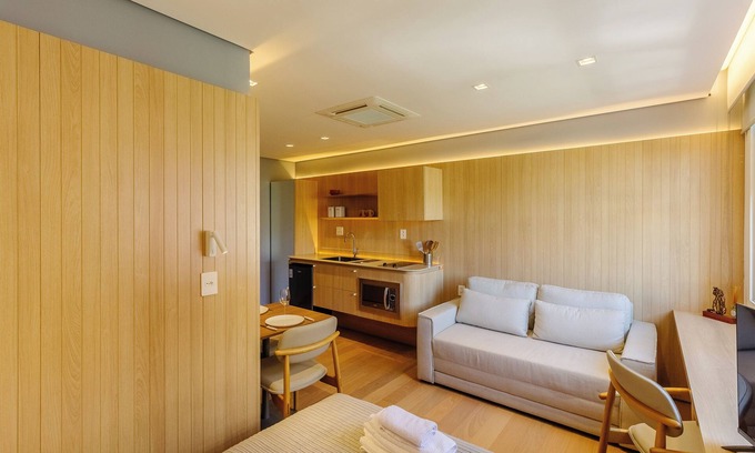 GeneralSquare meters - 23.1, Bed sheets provided, Hair dryer, Electric kettle, Number of bedrooms - 1, Ping - 7, Microwave, Toilet paper, Stovetop, Towels provided, Blender, Soap, Air conditioning, Square feet - 249.1, Kitchen, Iron/ironing board, Shampoo, Refrigerator, Bed count minimum 1, Bed count maximum 1 |