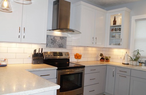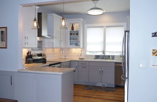 The two story house features a great kitchen, stocked with any tools you may need, including a gas grill on the deck. The three bedrooms all have wall-mounted flat screen TVs with comfortable beds (queen, queen, bunk bed with a full below, twin on top plus a pull-out twin trundle). The living room couch is a super comfy sectional. There is a beautiful full bath with a double vanity, rainfall shower, soaking tub, plus a half-bath upstairs. Other amenities include cable, WiFi, full-size washer and dryer, central air conditioning, a full-basement with a work-out area, and private parking. Great for families! Great food, great shopping, and fun entertainment. We do have a three night minimum stay, except in our high-demand month of July which requires a six night minimum stay.