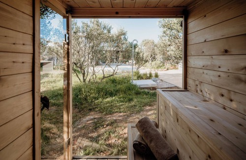 Outside, the villa offers an array of amenities set amidst the enchanting olive gardens, including a spacious swimming pool, a cozy lounge area, and even a refreshing cold plunge pool. Fully equipped kitchen with a bread oven and wood-burning built-in grill, all surrounded by the lush greenery of the olive gardens. A beautiful sauna awaits guests in the serene garden setting, providing the ultimate relaxation experience.