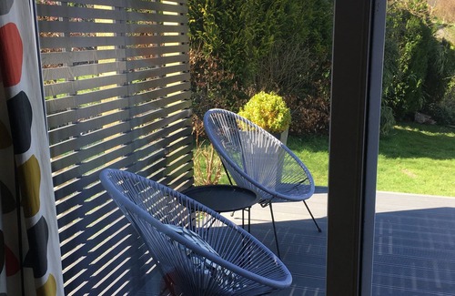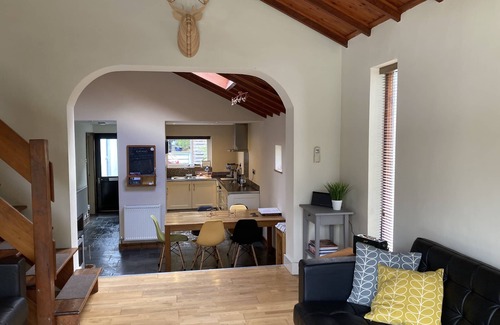 Modern fitted kitchen, bathroom with wc and shower room with wc, together with 2 double bedrooms (the mezzanine is off the lounge and has no door but is not overlooked) and 1 twin bedroom. Most importantly for our busy village location, we have private driveway parking for 2/3 vehicles and an EV charge facility (fee chargeable). Guests also have use of a secure garage for storing SUPs, bikes, etc.