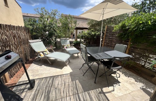 Pretty winegrower's house in a luxury residence overlooking the vineyards. Typical house in the region with two bedrooms and a bathroom with bathtub. The accommodation is located 30 minutes from the beaches and 20 minutes from Carcassonne and Narbonne. You can visit the Cathar castles and wine estates of the region. Nature and calm await you.