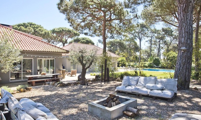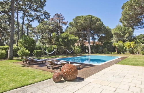 Beautiful secluded 500m2 villa located in Quinta da Marinha with 5 bedrooms +1, private heated swimming pool, pool table, 3000m2 beautiful garden, fire pit lounge, barbecue, home cinema, 5 car parking, walking distance to golf course and to the ocean.