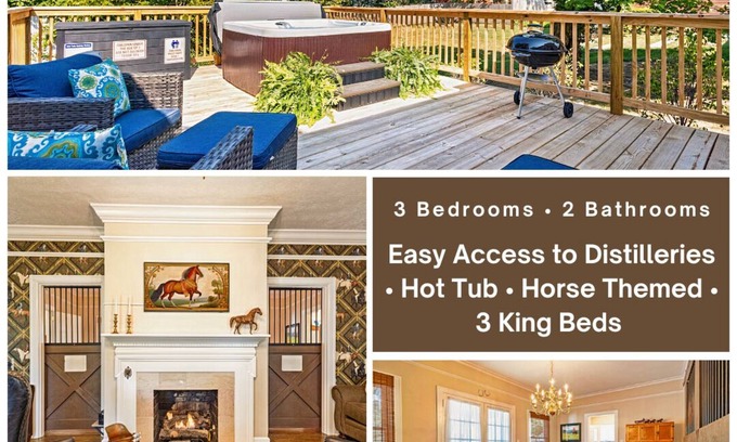 Nestled close to the Bourbon Trail, this charming retreat features a delightful horse theme and a relaxing hot tub. With three spacious bedrooms, it offers the perfect blend of comfort and convenience for your getaway. Enjoy easy access to the Bourbon Trail and unwind in style.