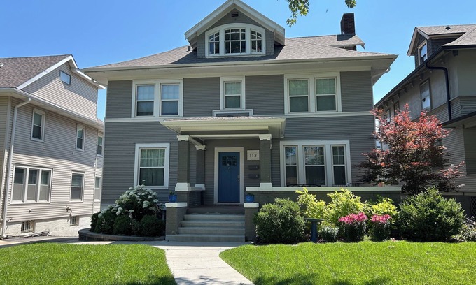Prairie four square built in 1913 in the Blackstone district of Omaha. This home has been lovingly restored and updated to be comfortable for groups up to 12. All new heating and air, electrical and plumbing, fire alarms for safety. Fully equipped kitchen and dining room, great room and TV area, powder room and laundry on first floor. Separate play areas for children with books and games for all ages. Landscaped backyard off large deck. Four off street parking spots available. Four bedrooms on second floor (2 with queen bed, one with king bed and one with queen bed and daybed with pull out trundle,) a full bath and a 3/4 bath. Third floor includes family room area, daybed with trundle and 3/4 bath. Located in recently revitalized Blackstone District with variety of restaurants and bars, nearby Midtown Crossing includes more restaurants, a park with outdoor concerts in the summer, shops and a theater. Centrally located with short commute to UNMC, UNO, Creighton, TD Ameritrade Ballpark, CHI Health Center Arena and Convention Center, Old Market District, Henry Doorly Zoo, Lauritzen Botanical Gardens, Joslyn Art Museum. Rental bikes and scooters available in Midtown Crossing. *Please note - we do limit to 12 guests and do not allow gatherings beyond the guests staying at the house.