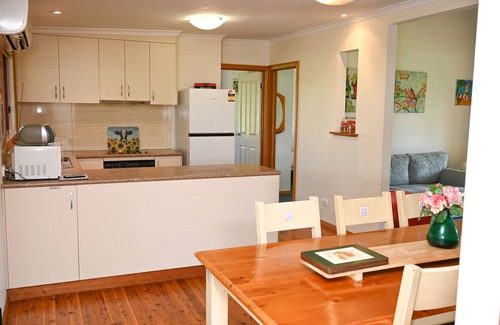 Take some time to enjoy the charming countryside, with all the modern comforts of home. Our cottage has 3 bedrooms, living area, full kitchen and laundry facilities. Also, a lovely undercover/outdoor area (off the dining room) with BBQ facilities and an outdoor fire. There is reverse cycle air-conditioning system to keep you cool in summer and warm in winter. A walking track from Jingellic to Walwa and you can also walk to pebble beach (track leading through golf course) which is approximately two kilometers away from the cottage. Two great pubs for a meal.