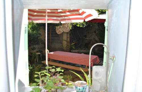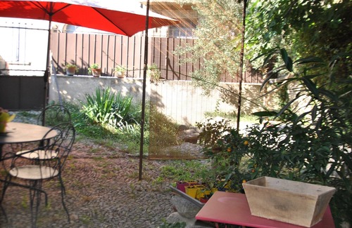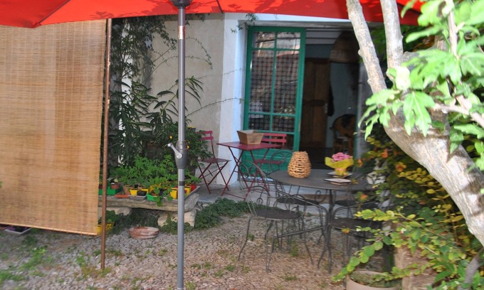 The accommodation is in an 18th century village house, an old silkworm farm. It has a terrace of 80 m2 with outdoor lounge and a course where it is good to rest in the shade of vegetation. The neighborhood is quiet and the village is surrounded by vineyards and cherry trees. We welcome you with great pleasure and are not stingy with information if you wish. Free parking is in front of the house, and we go on car-free hikes.