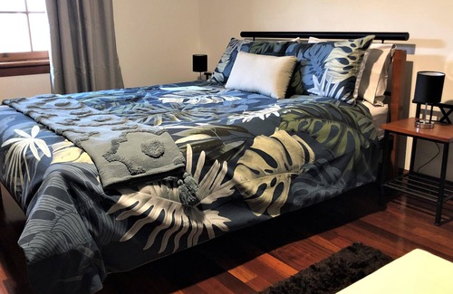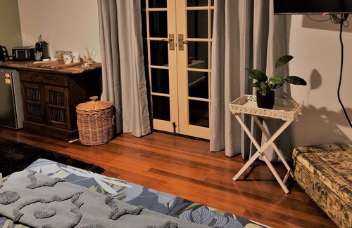 After a relaxing spa in your private bathroom, enjoy a restful sleep on a super comfortable bed with quality pillows, electric blanket, duck down doona and1500 thread count sheets. Wake up to a lovely view from the French Doors that open up to a private courtyard, where you can enjoy your complimentary continental breakfast including local jams, honey and seasonal fruit. Feel free to stroll around our 8 acre property, feed the ducks in the pond or pick fruit from the orchard. Enjoy the abundance of bird life from the iridescent Blue Wren to the unmistakable laugh of the Kookaburra. Only minutes from Town and the Blackwood River where you can enjoy a walk, paddle boarding or canoeing. Room comes complete with reverse cycle a/c, wall mounted TV, Netflix, Stan, Wifi, bar fridge, toaster and kettle. The sideboard has workspace and is well stocked with glassware, tea and coffee mugs, plates and bowls, cutlery, cheeseboard and knife to make your stay easy. You will have complete privacy as this accommodation is in a separate wing in our house with it's own access. There is ample parking with room for vans, trailers or boats.