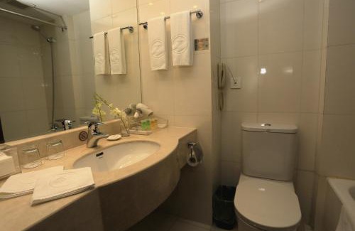 Beijing Continental Grand Hotel is 1640 feet from the Olympic Sports Center and the renowned Beijing National Stadium Bird’s Nest. This modern property offers stylish rooms and a 24-hour front desk with luggage storage service. Air-conditioned guest rooms are fitted with tea/coffee making facilities, a work desk and a flat-screen TV with satellite channels. The private bathroom offers free toiletries and a hairdryer. Laundry and dry cleaning services are available. The hotel also provides express check-in/check-out services for guests’ convenience. Wu Zhou Restaurant serves a variety of Chinese dishes. There is also a coffee place serving hot beverages and light meals. Hotel Continental Grand Beijing is 9.3 mi from the International Trade Center and 16 mi from the popular Tiananmen Square. Beijing International Airport is 19 mi away.