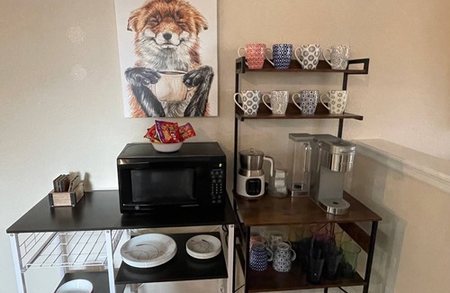 There are two bedrooms with king beds. Each bedroom has a spacious walk-in closet available for your use. In the living area there is also a queen size sofa sleeper bed. You will have a spacious bathroom with a shower/tub combo, and lots of room to get dressed and made up. There is a washer and dryer available with a near infrared 2 person sauna. The kitchenette has a full size refrigerator, a tabletop airfryer oven combo, induction heaters for pots and pans, a microwave, toaster, and blender. You will also have a Keurig coffee maker and a frother for all your coffee needs.