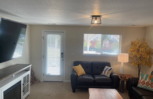 This is an entire guest suite on the basement floor of our house, perfect for up to 6 guests. It has a private entrance with a cement walkway and is separated from our living quarters. Your family will be close to everything when you stay at this centrally-located place. It is located in a beautiful and safe neighborhood on the north side of town.