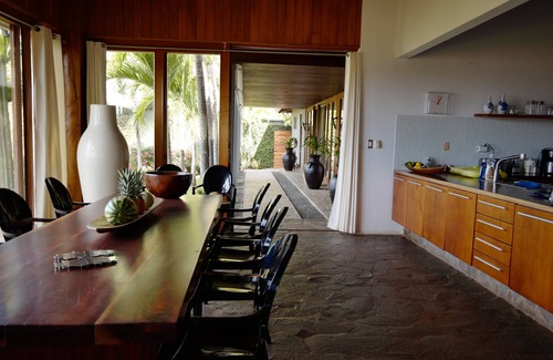 Constructed from native stone, wood and glass, the high ceilings and large, open spaces of the villa give you the needed space to relax, while soaring windows on all sides capture breathtaking views of the ocean, sunsets, and verdant surroundings. Sleek, contemporary design furnishings provide luxurious comfort and functionality, while all the necessary amenities will satisfy your every need.