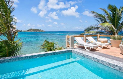 The pool area is lovely overlooking Dawn Beach with teak loungers surrounding it on the sun deck plus outdoor dining area for 6 persons...Two steps down from the sundeck will bring you to the covered gazebo with loungers for relaxing in the shade. A staircase from the covered gallery leads down the water's edge.